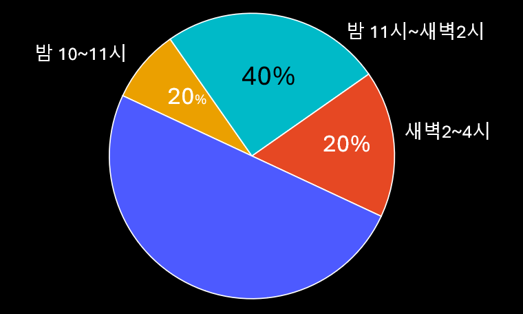 • 이 중에서도 23시~02시 사이는 40%, 나머지 시간은 20%예요.