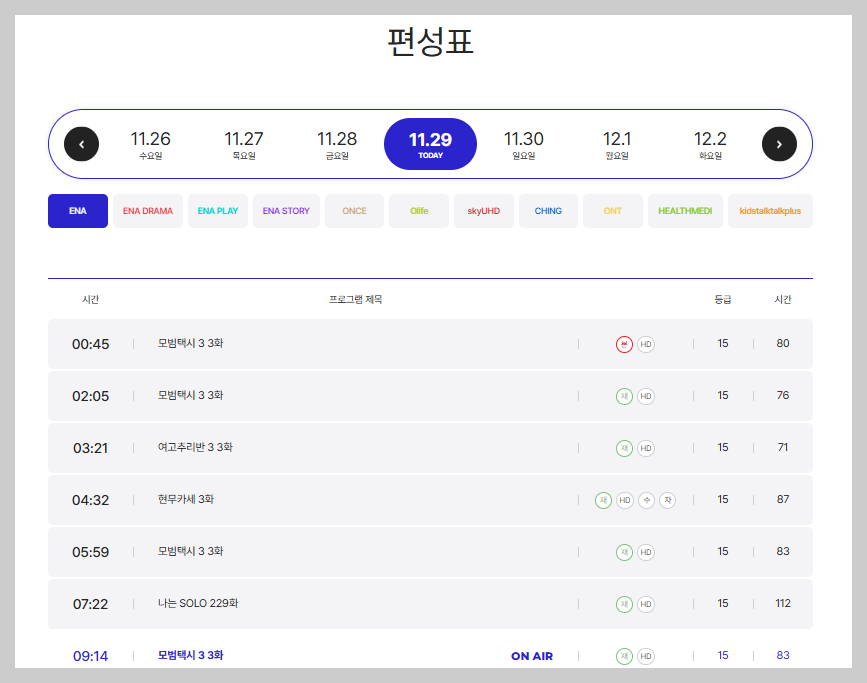 가장 정확한 ENA 편성표는 ENA 채널의 공식 홈페이지를 검색하여 쉽게 확인할 수 있습니다.