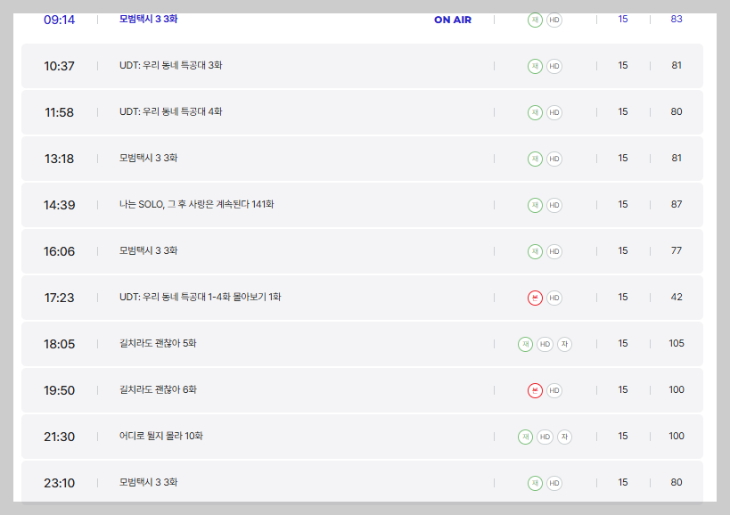 • ENA 채널 재방송: ENA 채널에서는 평일 새벽, 오전, 오후 시간대 그리고 주말에 재방송을 수시로 편성하고 있습니다. 특히 주말에는 이전 회차를 연속으로 보여주는 몰아보기 편성이 자주 있습니다.